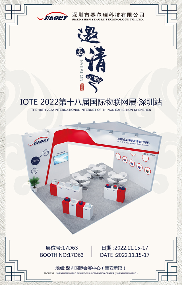 18-я Международная выставка Интернета вещей IOTE - Шэньчжэнь пройдет с 15 по 17 ноября 2022 года в выставочном центре Shenzhen World Exhibition&Conversation Center. К этому времени, компания Shenzhen Seaory Technnology Co, Ltd возьмет с собой принтер карт марки SEAORY для участия в этой выставке. Мы покажем вам продукт принтера, который интеллектуально сделан в Китае, полностью независимая интеллектуальная собственность.