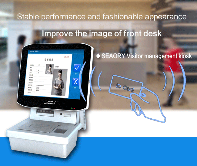 SEAORY intelligent visitor management system S-STVM203 is a high-end models specialized in realizing office automatization for government and enterprise in the condition of informatization. Thanks to its fashionable appearance and stable performance, it is a preferred choice for most high-end users like large-scale enterprises, hotels and government agencies to manage the visitor efficiently and improve the image of front desk better.