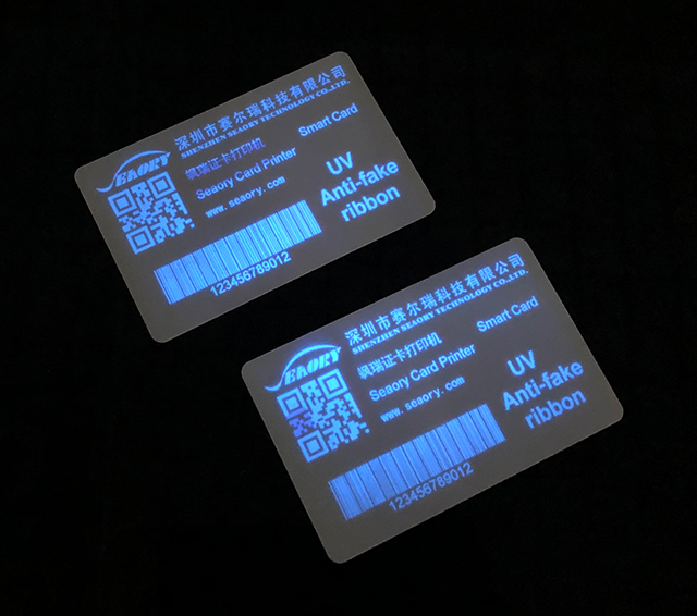 In response to the market demand, we realize personalized printing with card printer, and bid farewell to the tedious mass printing of large printing machines. Now Seaory has launched Seaory S series UV security ribbon.The ribbon is widely used in card schemes for enhanced protection and color, which can use specific colors to add fluorescent images and text.Make cards easier to verify and more secure.It has the characteristics of high clarity, obvious color changing effect, strong glossiness, good scraping resistance and saving ribbon, etc.